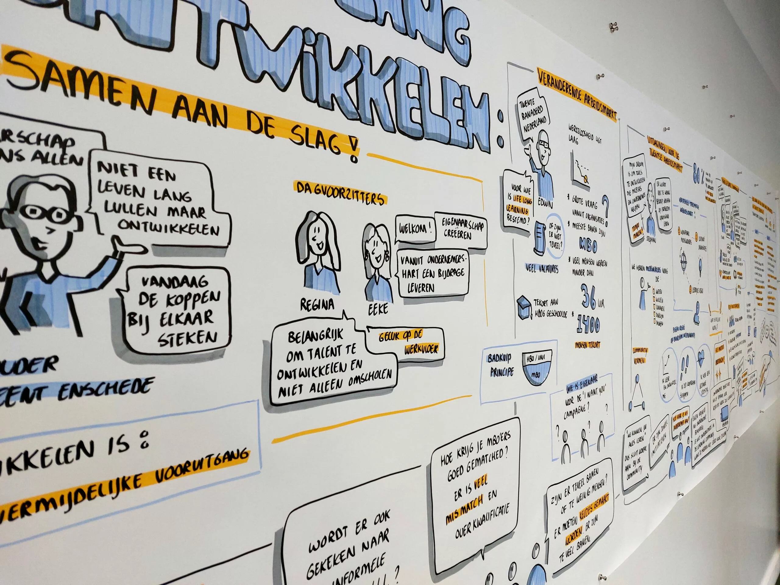 Een strategische visualisatie wordt in samenspraak met onze opdrachtgevers gemaakt. We toetsen daarbij hoe het verhaal en de strategie geïnterpreteerd en geframed wordt. Op basis daarvan wordt volgens een stapsgewijs proces van concept, ontwerp naar concreet eindresultaat gewerkt. Afhankelijk van afstem momenten en correctierondes kan een praatplaat al binnen 4 weken gerealiseerd worden.